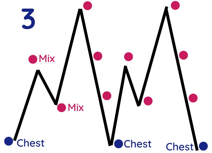 Dots Chest Voice Exercise English AAH EEE OOH OH EUH Spanish AAAH i UH O U Vowel Modifications A a = eh/ey DIPTHONG I (as in the word "I") = uh---(ee) NOT DIPTHONG I (if, it, with, etc) = Go Toward eee